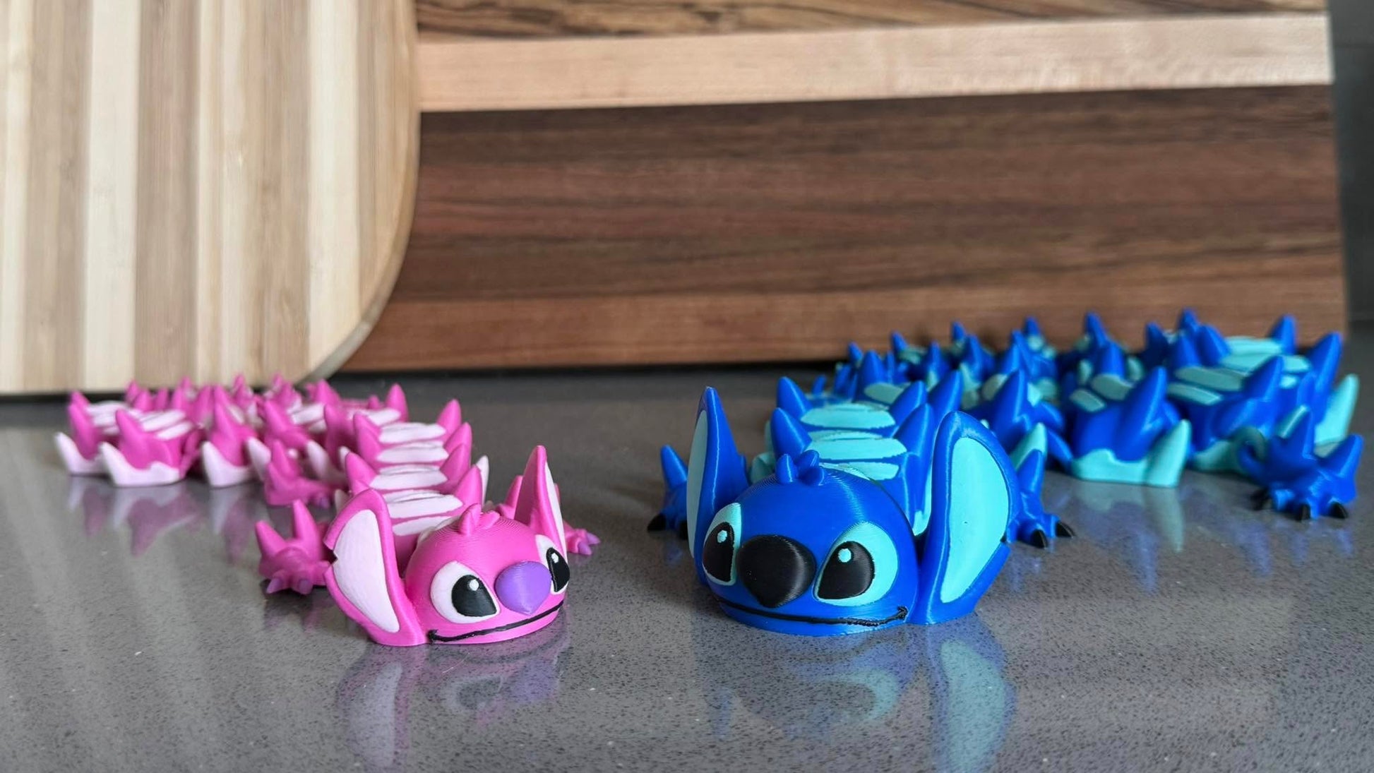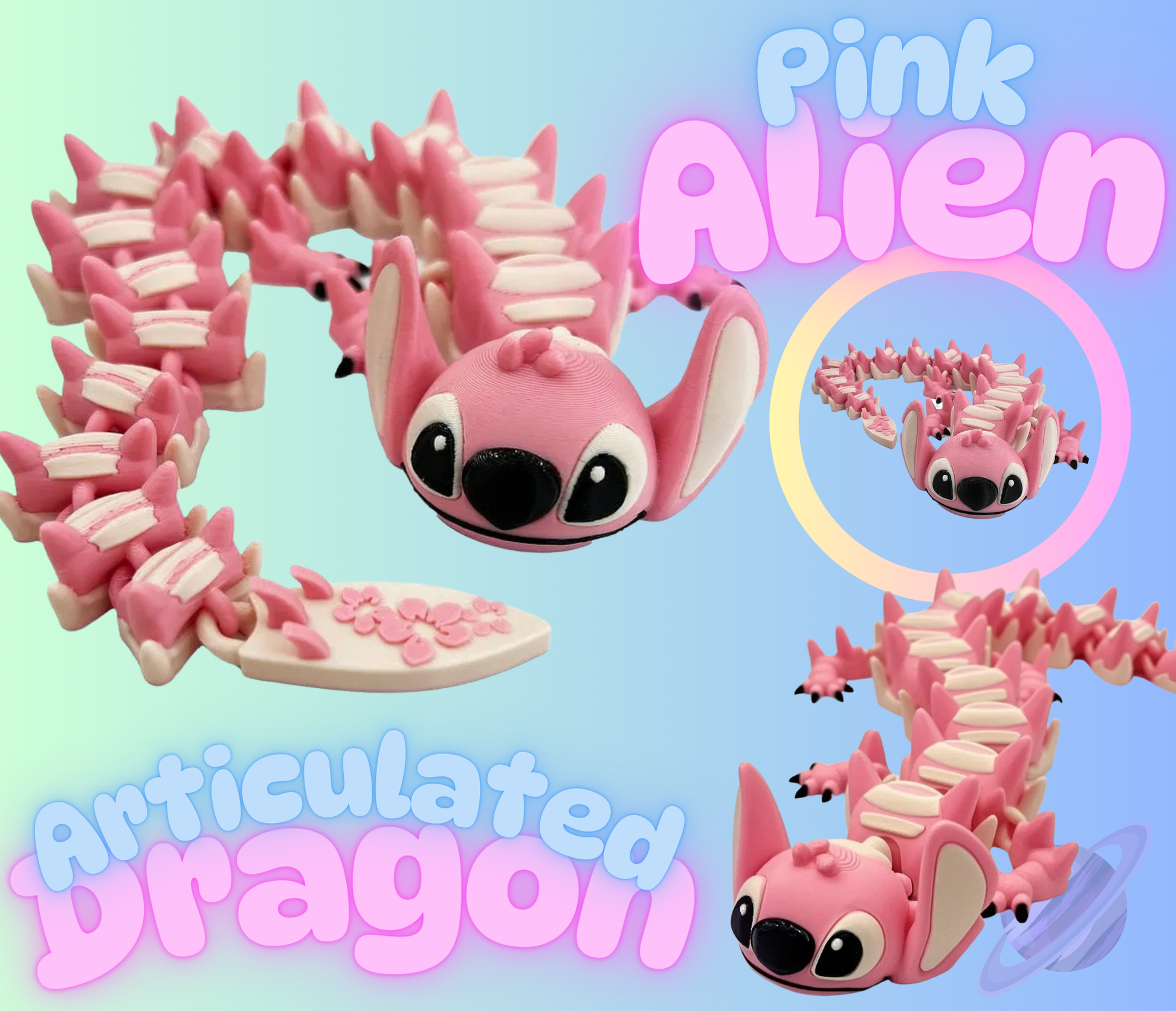 🌟 Inspired by your favorite Hawaiian adventure movie characters, our Blue Alien and Pink Alien Articulated Dragons capture all the charm and mischief you adore!