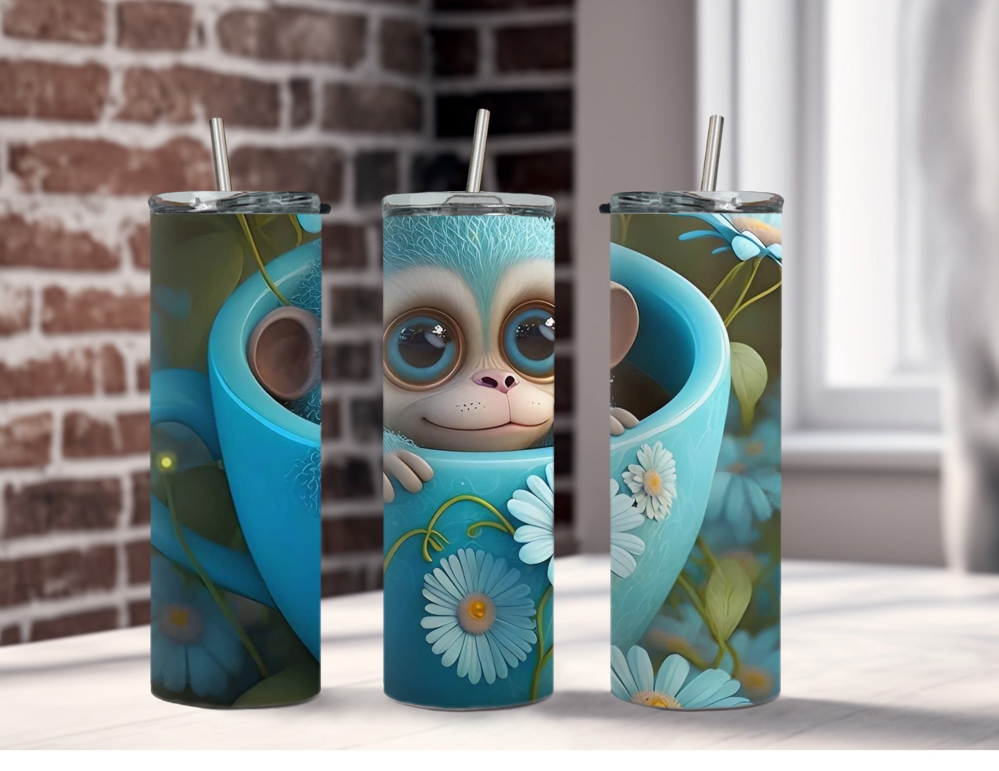 Blue Monkey in Cup - Custom 20oz Sublimated Tumbler – Made to Order