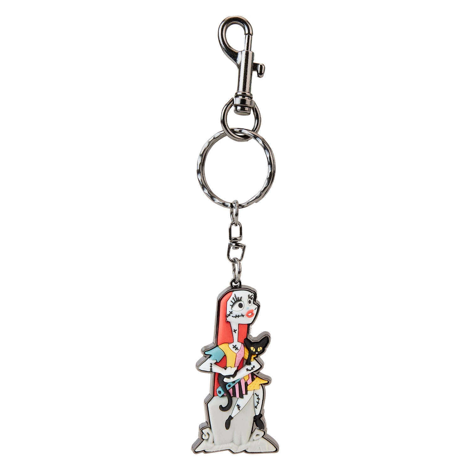 We sense a premonition in the wind! The Loungefly Nightmare Before Christmas Sally Keychain shows Sally as she ponders wistfully on a tombstone. A black cat curls up in her lap as she looks at the sky. As daylight fades, Sally lights up the darkness with a haunting glow. Connect her to your bag or keychain to add an additional storytelling moment to your look!