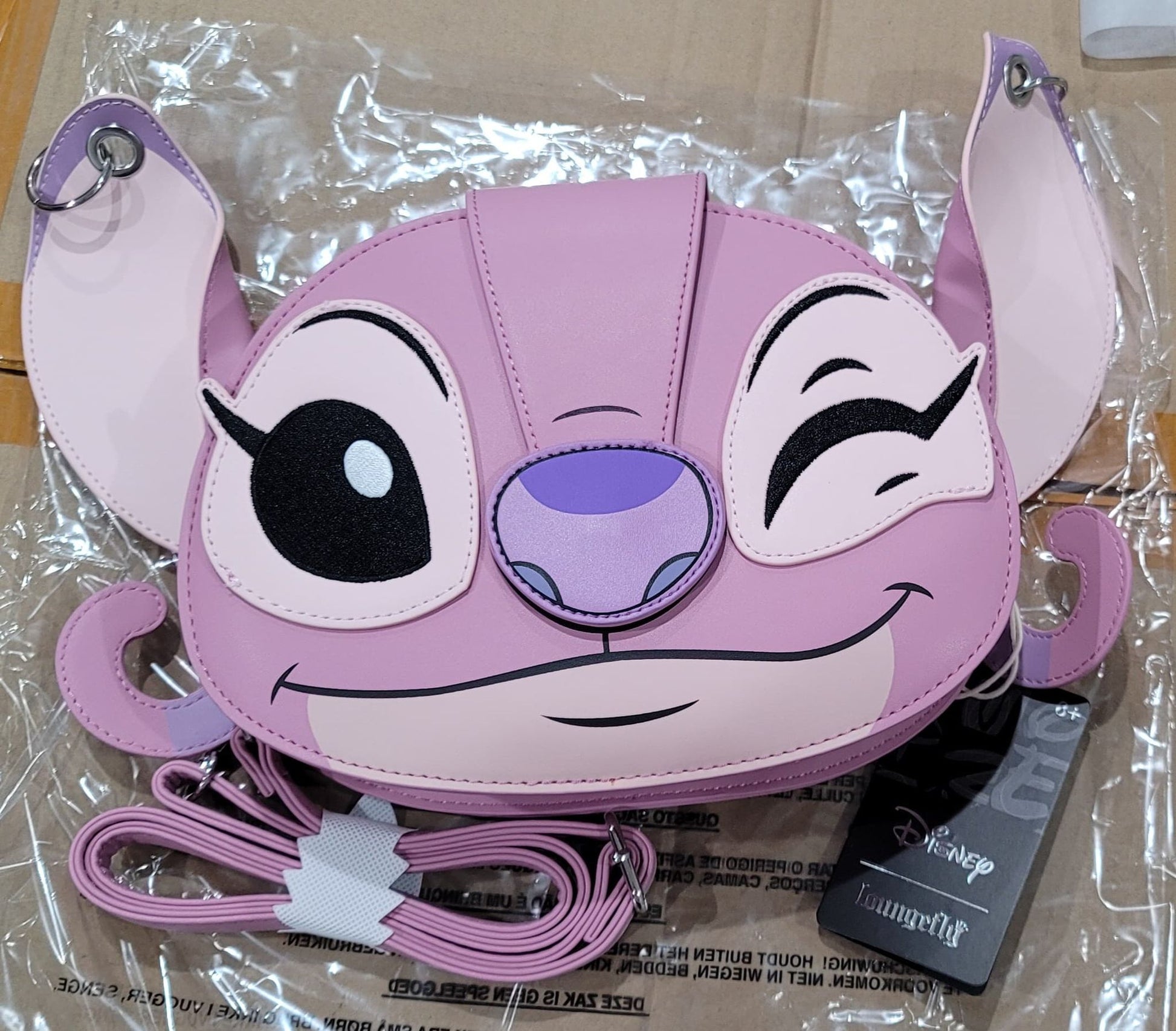 Experiment 624 is out and about and wants to tag along with you on all your adventures! Take her with you as this Loungefly Disney Lilo & Stitch Angel Cosplay Crossbody Bag. This dimensional crossbody bag, which is shaped like Angel’s adorable face, is super soft and stylish. On the front, Angel gives a playful wink. Her tendril-like antennae, in applique form, curl up on either side to frame her face. The shoulder straps attach to her applique ears, which point up. This crossbody bag is the perfect accessory for keeping favorite Disney moments close and adding a touch of magical style to Disney or everyday outings.
