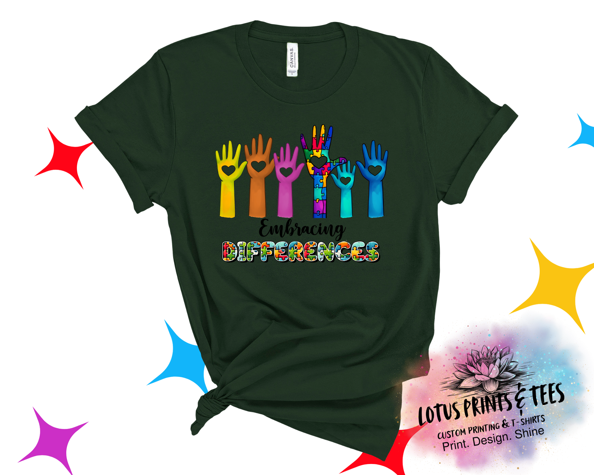 - Colors may vary slightly depending on screen settings and garment choice